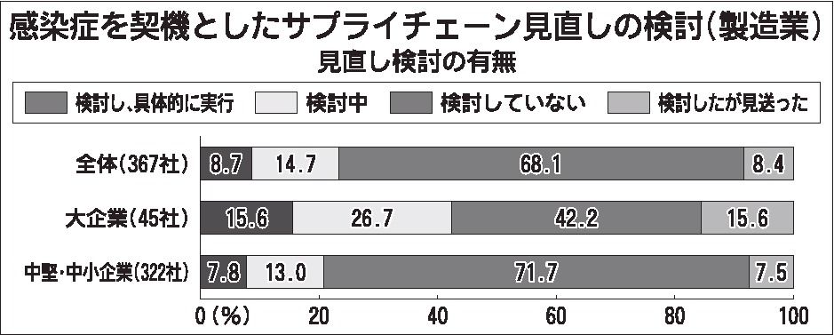 政府は「令和3年度年次経済財政報告(経済財政白書)」の中で、製造業を中心とした企業のサプライチェーン強靭化が課題であるとの認識を改めて示した。今春実施した調査の結果では大企業の7割近くが供給網の見直しを「検討していない」としたものの、その...