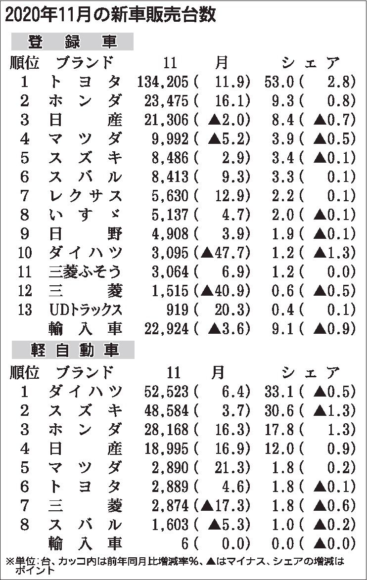 〈2020年11月の新車販売台数〉