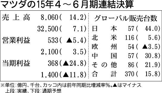 マツダ、4~6月期の連結業績 4年ぶり営業減益