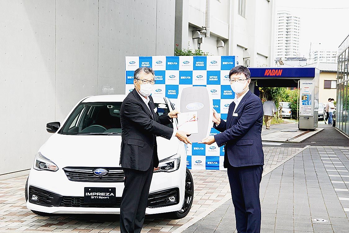 スバルと宮城スバル、花壇自大に教材用車両1台(インプレッサ)と故障診断ソフトを寄贈