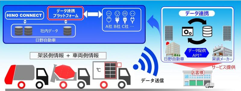 これまでは別々に管理されていた架装と車両のデータを統合運用できるプラットフォームを日野が開発。部分的なデータ連携でシステムの動作性などを検証した後、連携させるデータを増やし、本格運用に移行する。