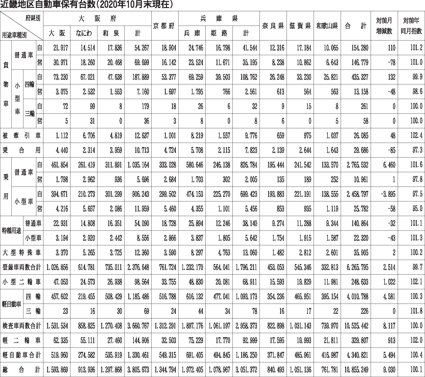 〈近畿地区自動車保有台数(2020年10月末現在)〉