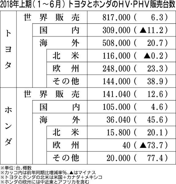 1~6月 HV/PHV世界販売 トヨタとホンダ、ともに堅調