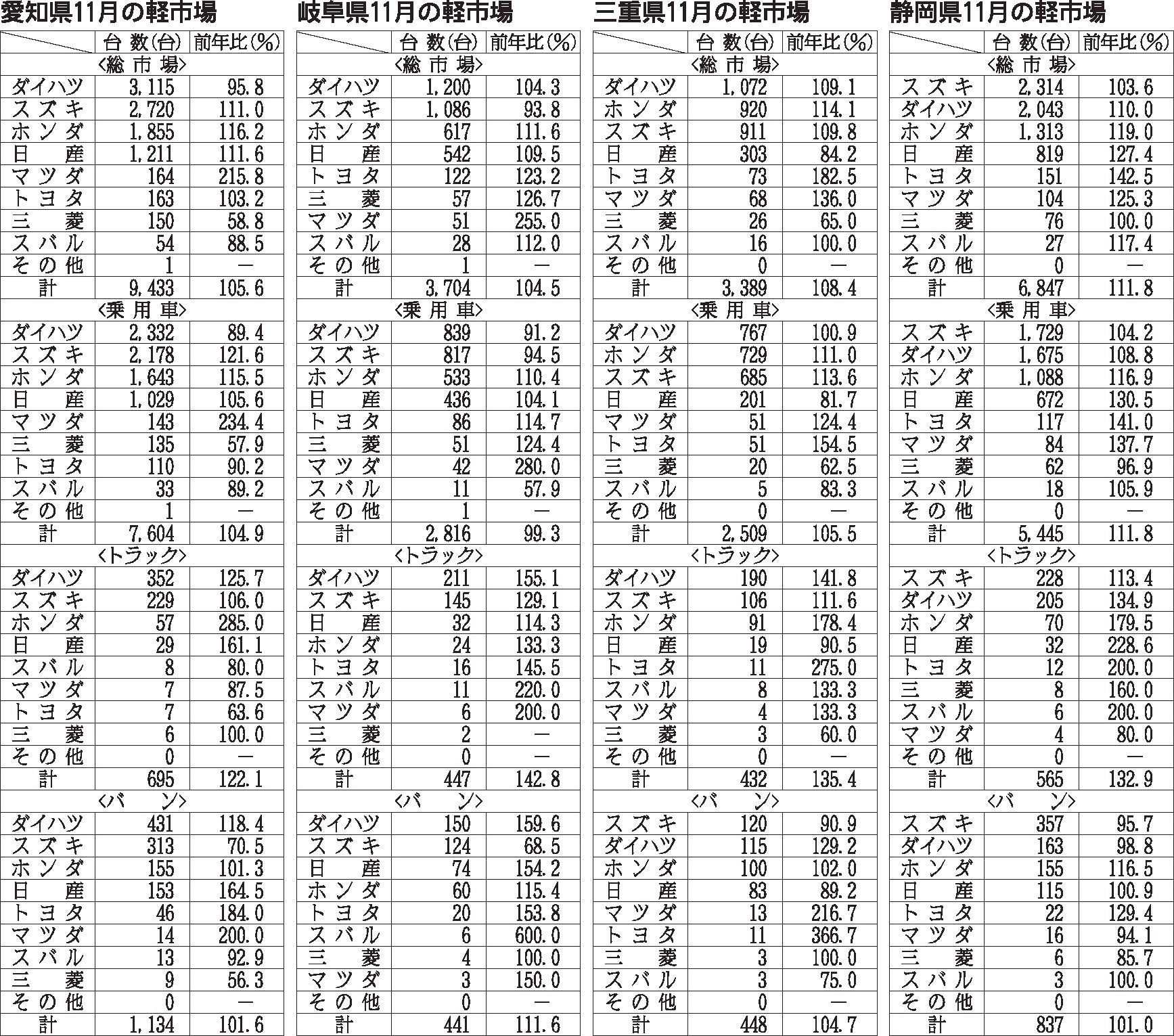 〈中部4県11月の軽市場〉