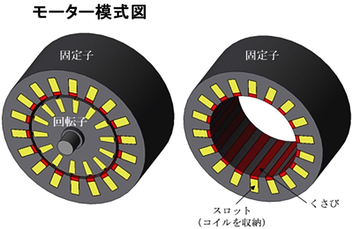 東芝は、モーターのスロット部に収納するコイルの脱落を防ぐ「くさび」に適した磁性材料を開発したと発表した。モーターのエネルギー効率を高めることが可能で、鉄道用の実機誘導モーターで効率が0.9ポイント向上することを実証した。世界中のすべてのモーターの効率が同水準向上したとすると、100万キロワットの発電所10基分に相当する削減効果になるという。高い耐熱性も実現しており、鉄道のほか自動車や医療機器、ロボットなど幅広い用途での適用を見込む。