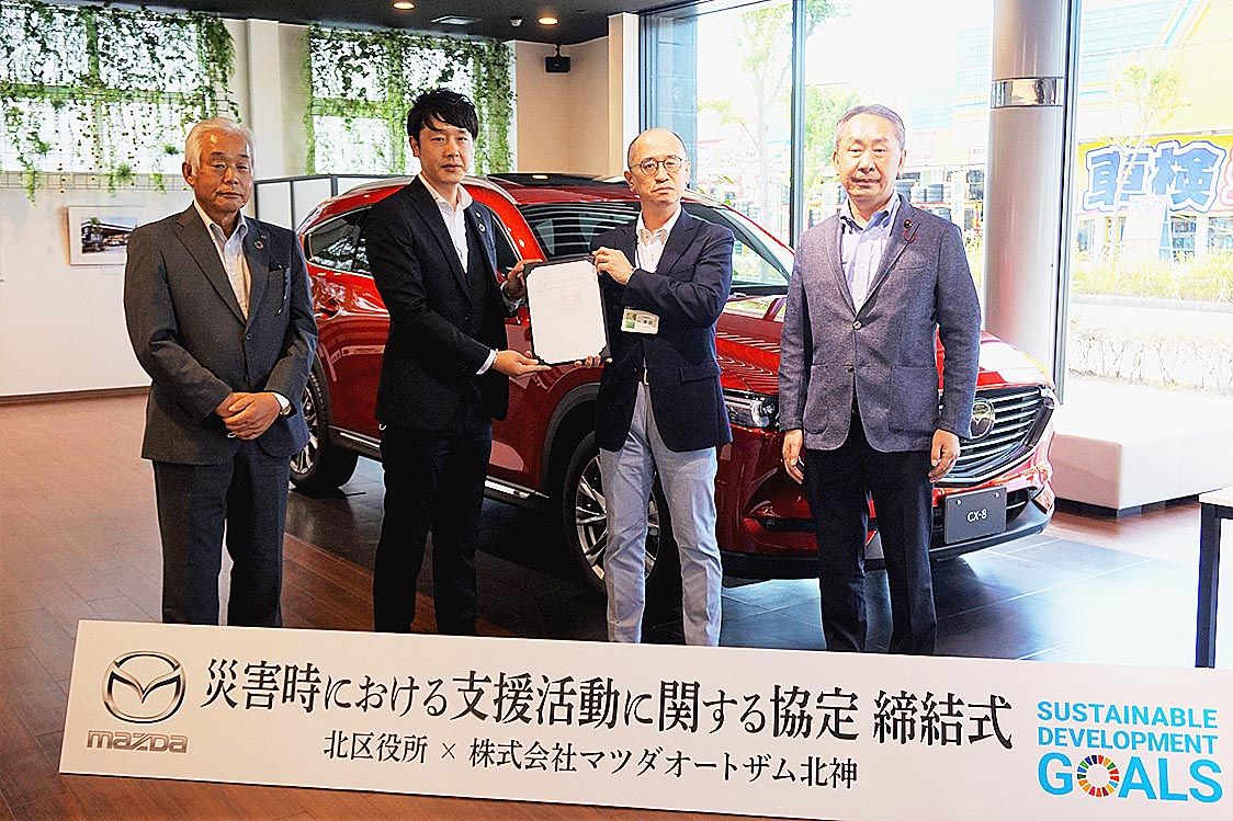 【神戸】マツダオートザム北神(高山和之社長、神戸市北区)は、神戸市北区役所と「災害時における支援活動に関する協定」を締結した。同社の地盤となる有野や有馬など北区北神地域内で災害が発生した際に、北区役所から要請があれば社員を動員し同社が所有...