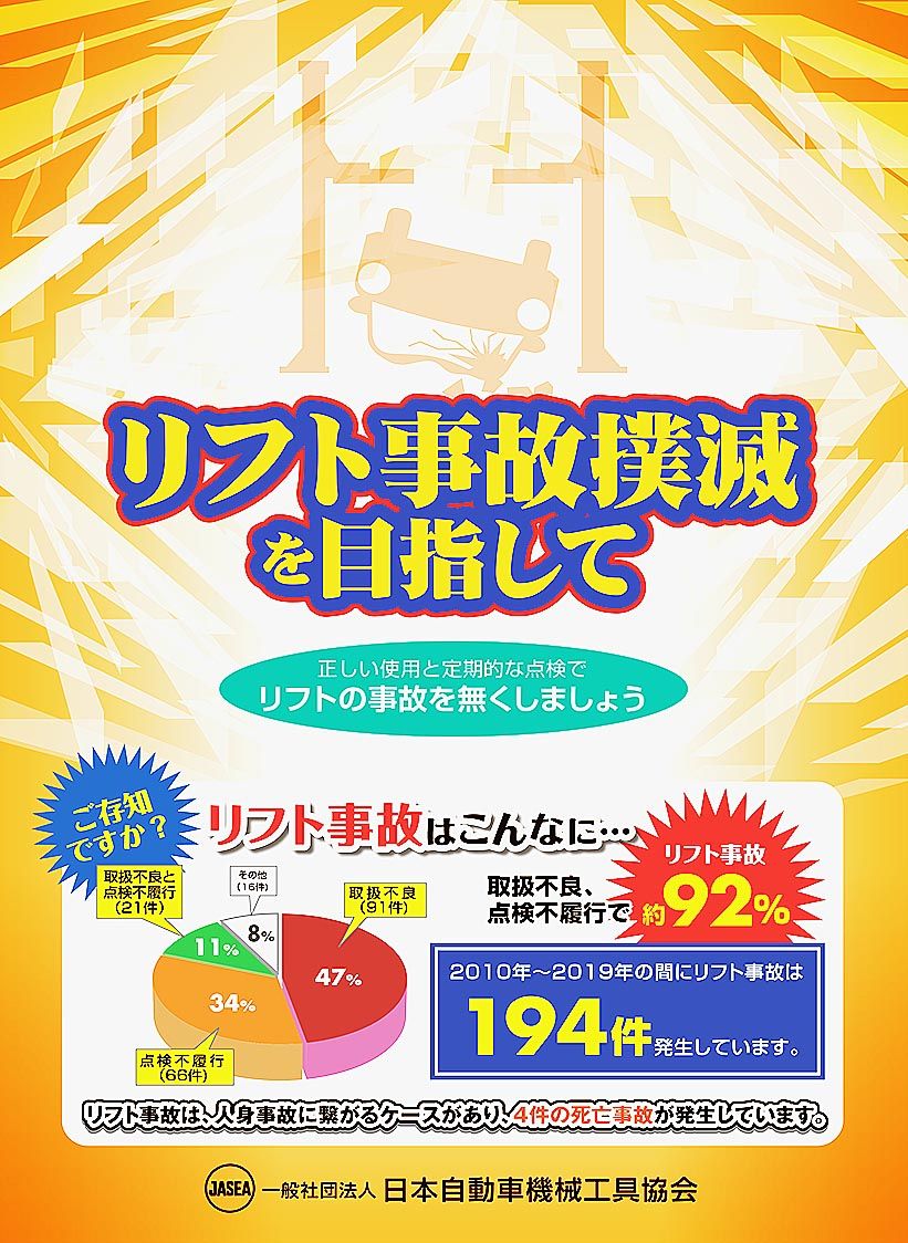 日本自動車機械工具協会(機工協、柳田昌宏会長)は、リーフレット「リフト事故撲滅を目指して」を刷新して発行した=写真。整備事業者にリフトの適切な取り扱い方や点検の重要性などを訴求し、事故防止につなげるのが狙い。 機工協の調査によると、201...