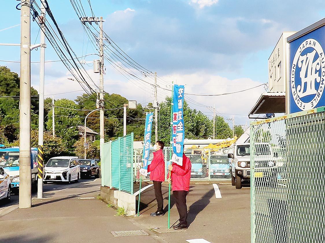 【横浜】日本自動車連盟(JAF)神奈川支部(上野健彦支部長)は、秋の全国交通安全運動の一環として、JAF神奈川支部管内の事務所や基地で街頭活動を実施し、ドライバーや歩行者に交通安全を呼びかけた=写真。 「交通事故死ゼロを目指す日」の9月3...