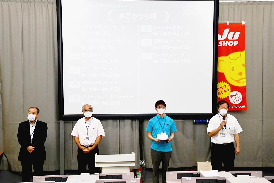 【静岡】静岡県中古自動車販売商工組合(JU静岡、小野田泰祐理事長)は、「ディーラー会担当AA」を開催し=写真、出品台数が目標を上回る1013台となり、成約率は56・8%となるなど、タマ不足の中、活発な競りが行われた。 開催前のセレモニーで...