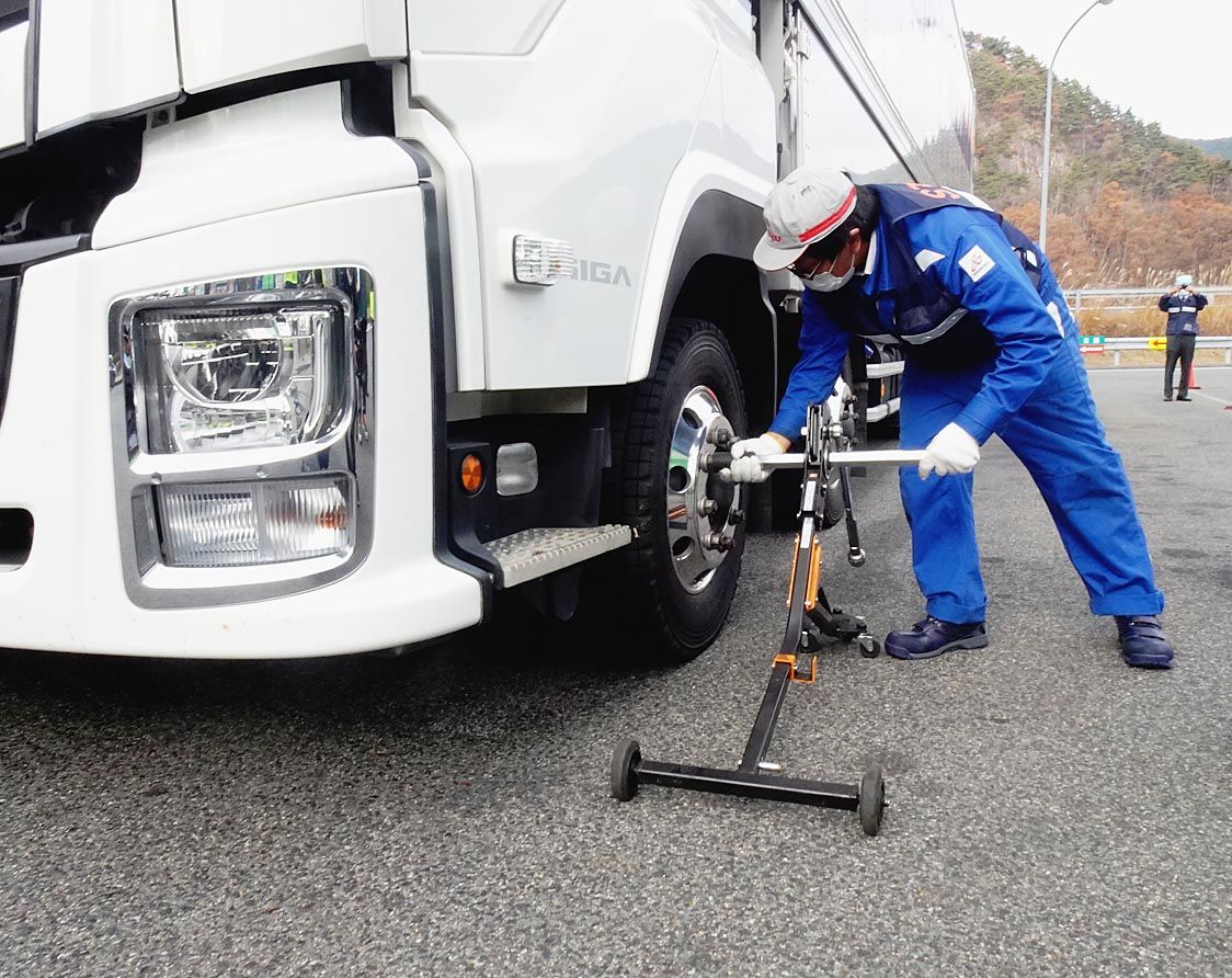 【山形】東北運輸局山形運輸支局(佐藤博昭支局長)は、山形市の山形自動車道山形蔵王パーキングエリア下り線で「大型車の車輪脱落事故防止を目的とする街頭検査」を実施した=写真。街頭検査は、東北運輸局や山形県警察本部、東日本高速道路(NEXCO東...