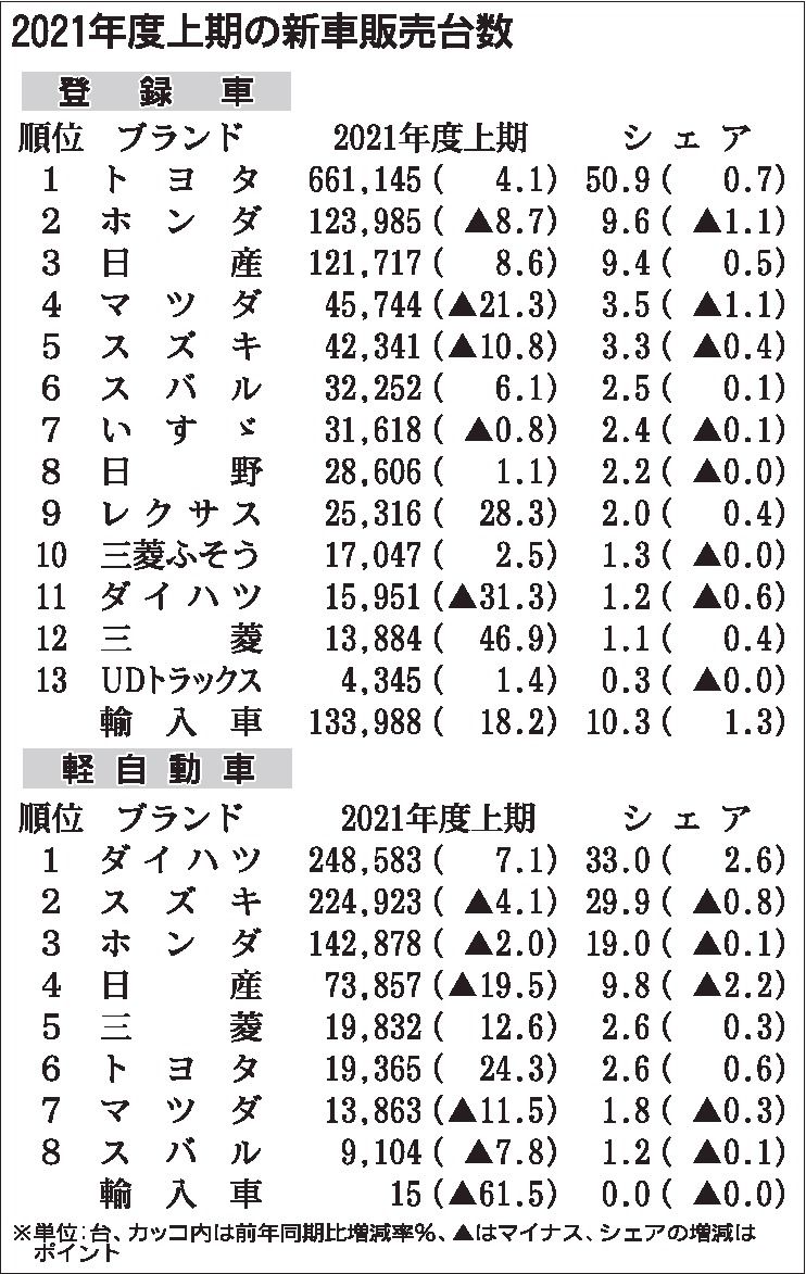 〈2021年度上期の新車販売台数〉