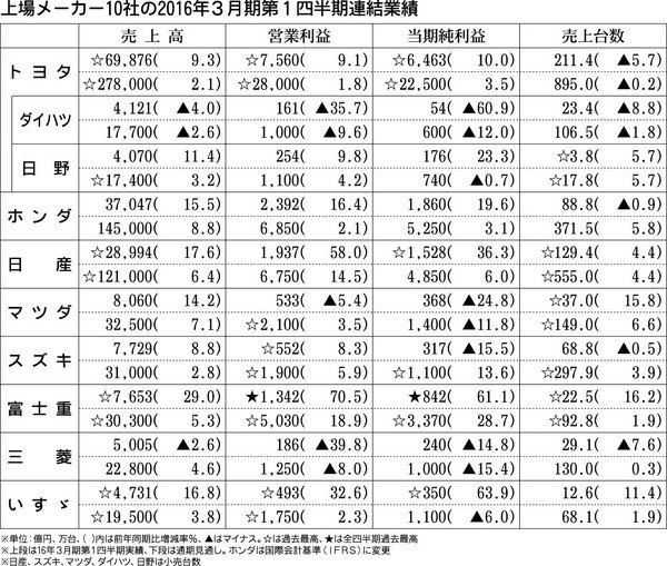 【上場メーカー10社の2016年3月期第1四半期連結業績《再掲載》】