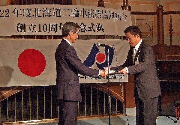 北海道二輪車商業協同組合(HMG、大村直幸理事長)は18日、創立10周年記念式典を通常総会に合わせて札幌市内のホテルで開いた。組合員と来賓など約70人が出席し、組織の節目を祝った。 大村理事長は「法人化して10年、任意団体発足から14年経...