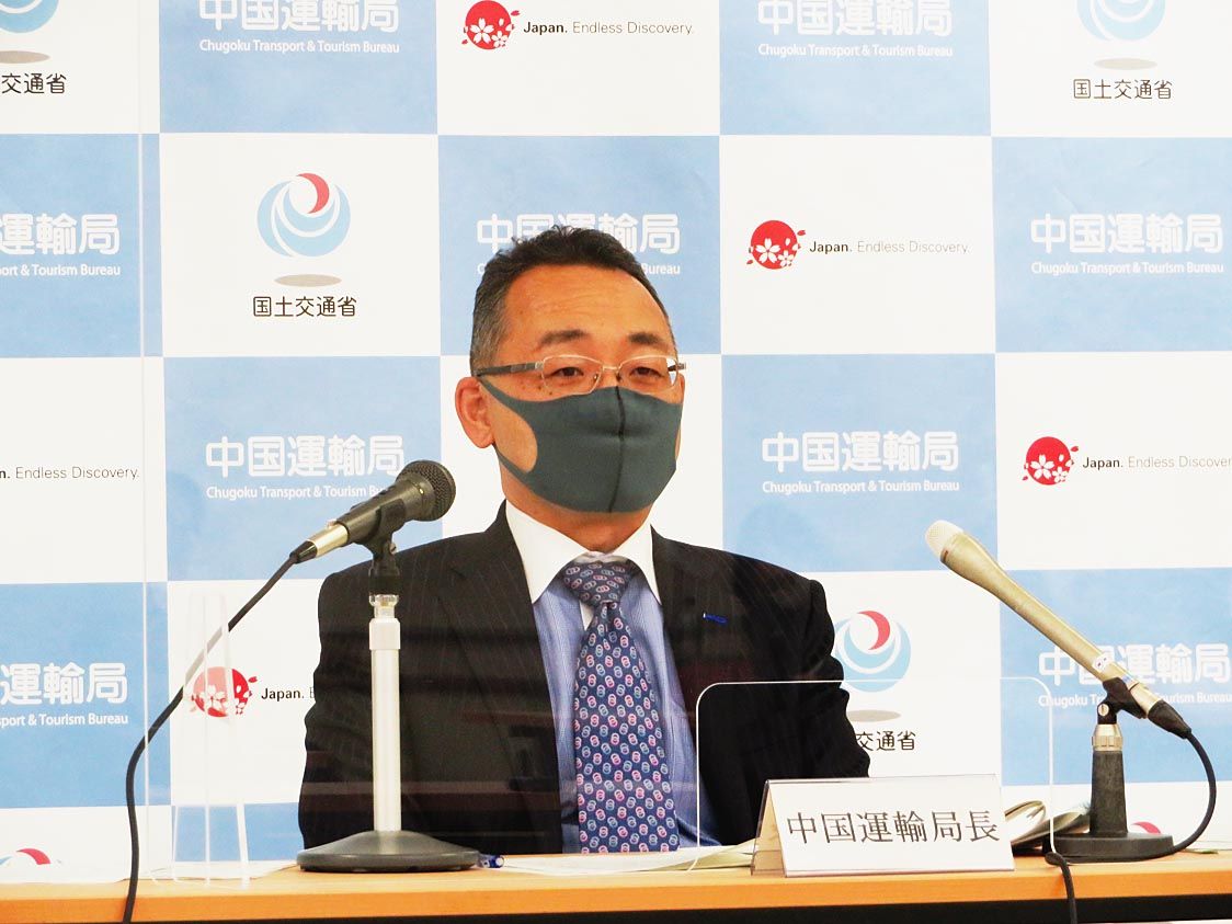 【広島】中国運輸局(河原畑徹局長)は局長会見を行い=写真、コロナ禍における中国地方の輸送や観光への影響を発表した。公共交通の運行状況については10月時点で地域鉄道・軌道で約4%、一般乗合バスで約5%、旅客船で約1%の減便にとどめるなど、事...