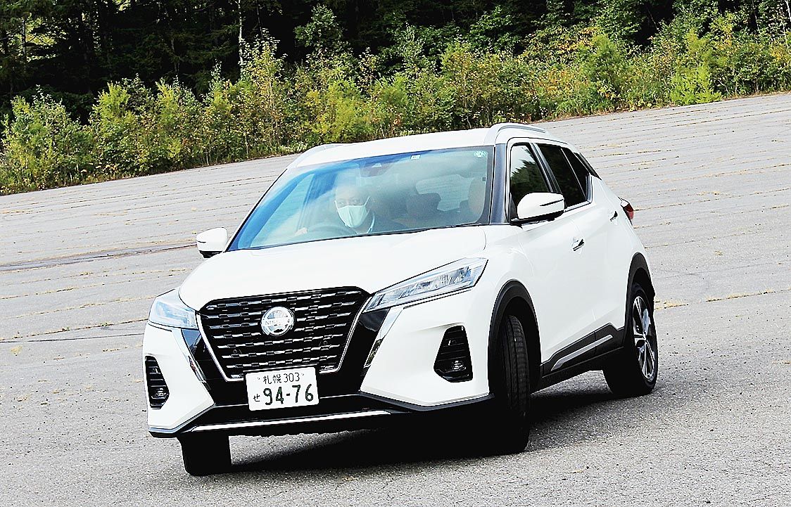 日産独自の電動パワートレインであるe-POWER搭載の電動化コンパクトSUVの「キックス」。4WDがなくFFのみの設定ではあるものの、2020年度グッドデザイン賞を受賞し北海道でも注目度が高まっている。晩秋の札幌で山のワインディング道路、...