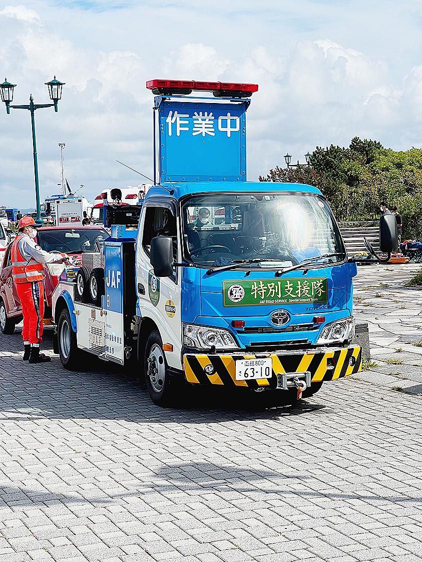 【函館】「函館市防災総合訓練」(主催=函館市防災会議)が市内にある緑の島で開かれた。自動車関係の自販連函館支部(河村祥史支部長)、日本自動車連盟(JAF)函館支部(同支部長)など35関係機関約500人が参加した。地震などの災害時における関...