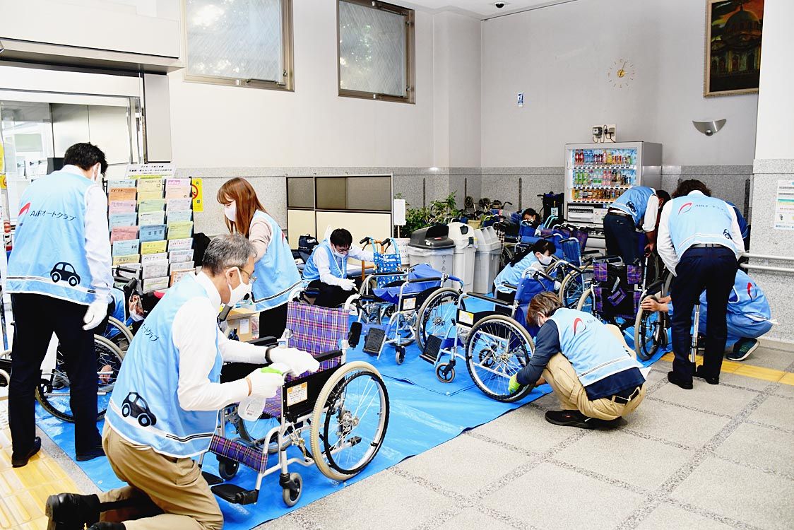 【静岡】AIRオートクラブ静岡支部(支部長=江田大介コーヨー自販社長)は、損害保険ジャパン静岡支店(山本耕平支店長)と合同で県内中部と東部の両地区で車いす整備・清掃ボランティア活動を実施した=写真。 中部地区は11月13日に、社会福祉施設...