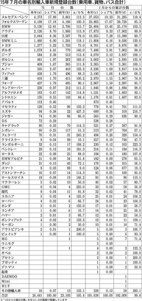 【15年7月の輸入車新規登録台数】