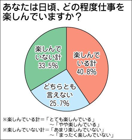 日本能率協会グループは第5回ビジネスパーソン1000人調査を実施、「仕事を楽しむ意識」についてインターネットで聞いた。それによると40・8%が仕事を楽しんでいると回答、このうち6割超が高い成果を上げていると自己評価した。調査担当者は仕事を...