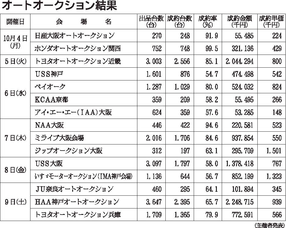 〈オートオークション結果〉近畿地区 2021/10/4~9