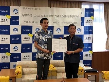 【那覇】沖縄マツダ(土井耕輔社長)は、浦添市と「災害時等における車両提供に関する協定書」を締結した。災害が起こった際に、浦添市の要請に応じて、クリーンディーゼルエンジン(DE)仕様車2台を無償で貸し出すもの。同協定は沖縄県では初めて。この...