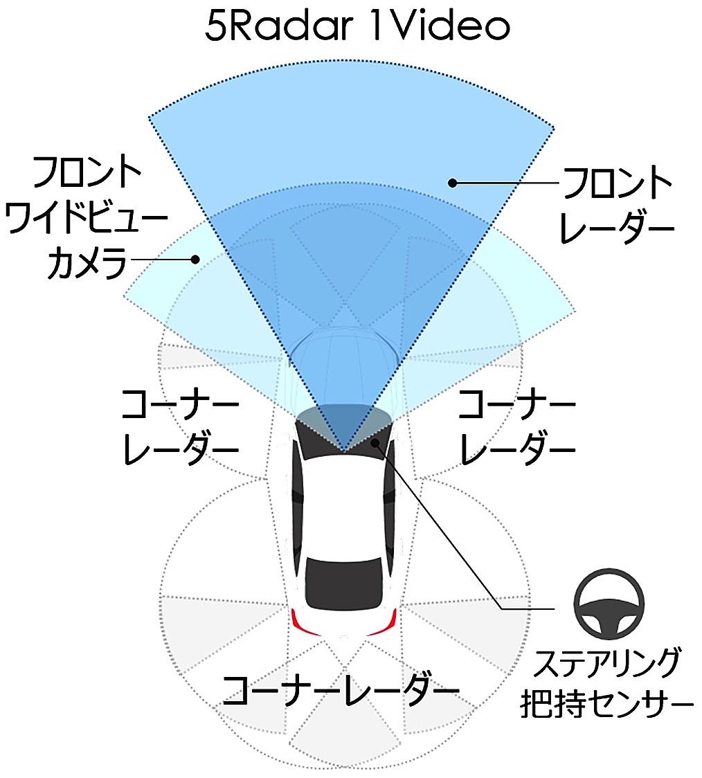 センシング360のシステムは、白線や路肩を検知するフロントワイドビューカメラ、遠方の障害物などを検出する長距離ミリ波レーダーに加え、車両周辺の障害物を検出する4つの中距離ミリ波レーダーで構成する。自動運転レベル3の機能を実現する「ホンダセンシングエリート」で培ったシミュレーション技術や公道の実走行で蓄積してきたデータを活用し、安全性能と信頼性能の向上を図った。
