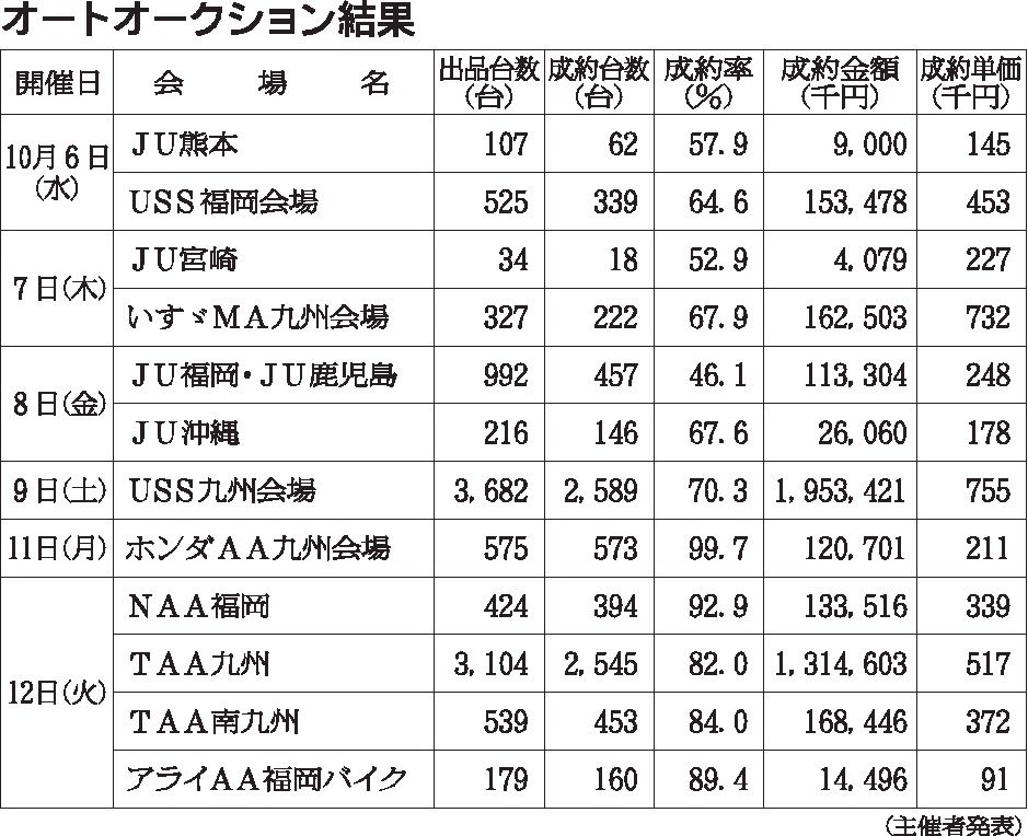 〈オートオークション結果〉九州地区 2021/10/6~12