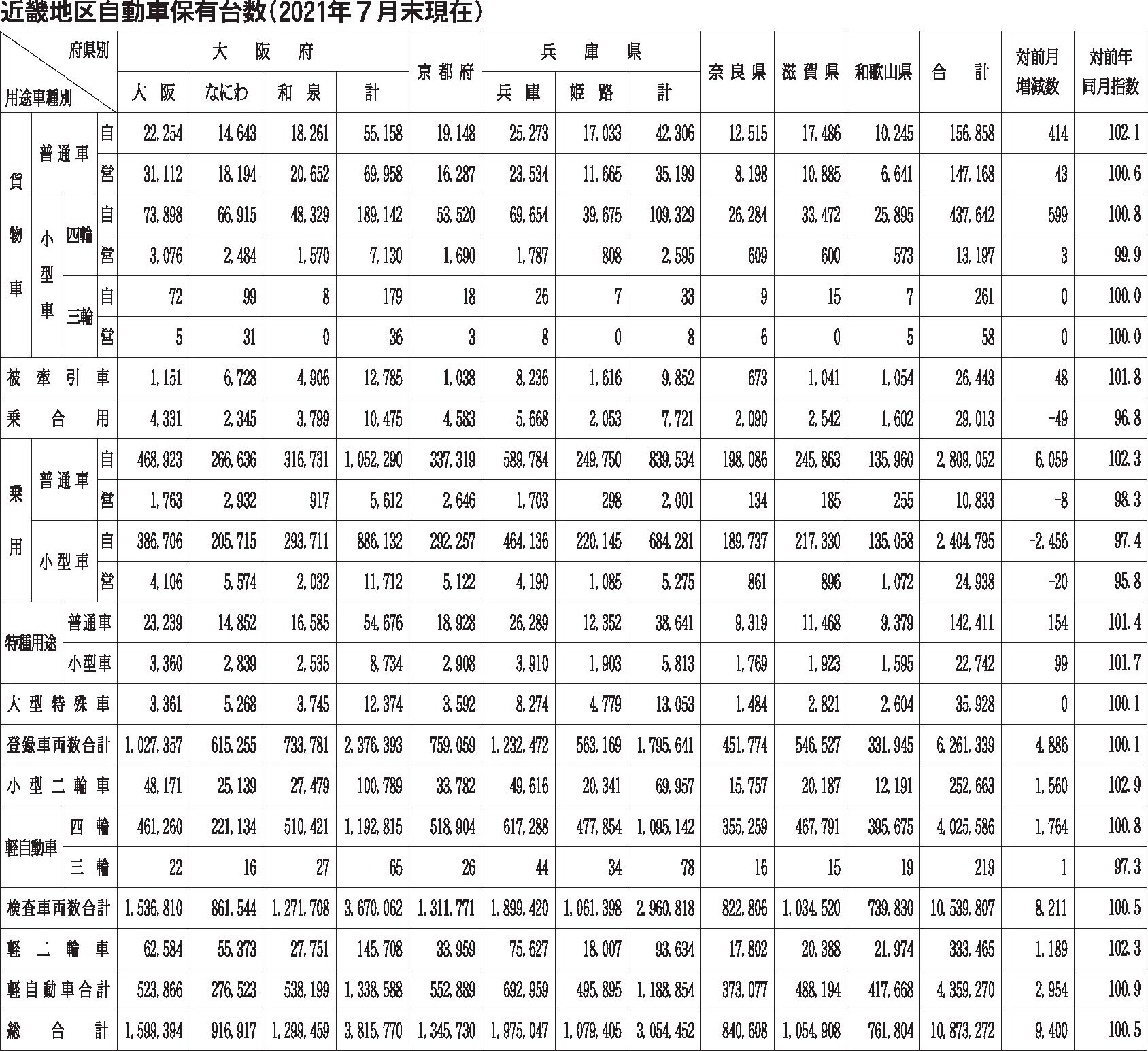 〈近畿地区自動車保有台数(2021年7月末現在)〉