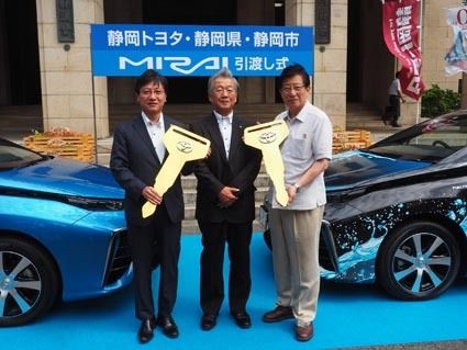 静岡県と静岡市は、燃料電池自動車(FCV)の普及に向けた事業に乗り出す。両者は静岡トヨタ(川嶋秀樹社長)からFCV「ミライ」を無償でそれぞれ1台ずつ借り受け、県内の企業や自治体、団体などへの活用を推進する。6日に静岡県庁で車両の引き渡し式...
