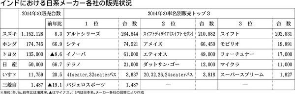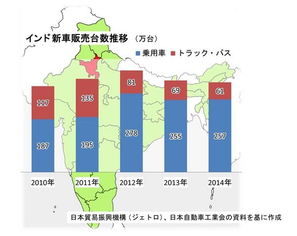 インド自動車工業会(SIAM)によると、2014年の乗用車販売台数は前年比0・7%増の257万702台と微増だった。インドの物価水準の高騰と、それに伴う経済成長の停滞により、販売が落ち込んだ13年とほぼ同水準となった。市場全体の停滞感は拭...