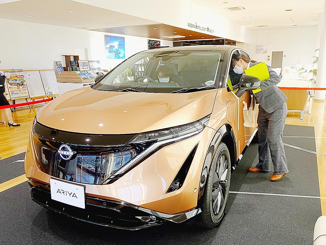 【岐阜】岐阜日産(星野真一社長)は、県内4店舗で新型電気自動車「アリア」の特別展示会を開催している=写真。週替わりで4店舗のショールームに実車を展示し、来店者が新型車を直接見たり触ったりする機会を提供することが狙い。第1弾の大垣インター店...