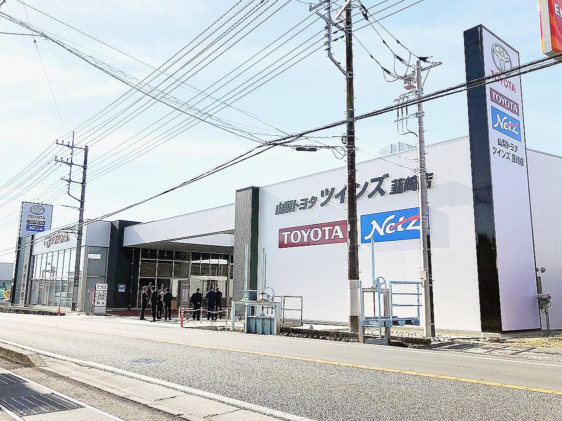 【甲府】山梨トヨタ(佐々木宏明社長)は、韮崎店をリニューアルし、新たに「ツインズ韮崎店」と名称を改めて営業を開始した。トヨタ自動車の全チャンネル全車種併売に対応して改築した初の店舗となり、グループ会社のネッツトヨタ山梨(磯部俊之社長)の韮...