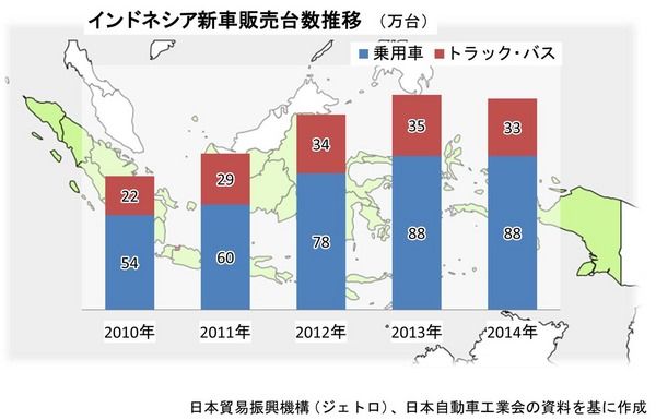 インドネシア自動車工業会によると、2014年の乗用車販売台数は前年比1・8%減の120万8019台と5年ぶりにマイナスに転じた。長期的な視点では成長市場と言われているインドネシアだが、通貨ルピア安や金利上昇、燃料補助金の削減などが影響した...