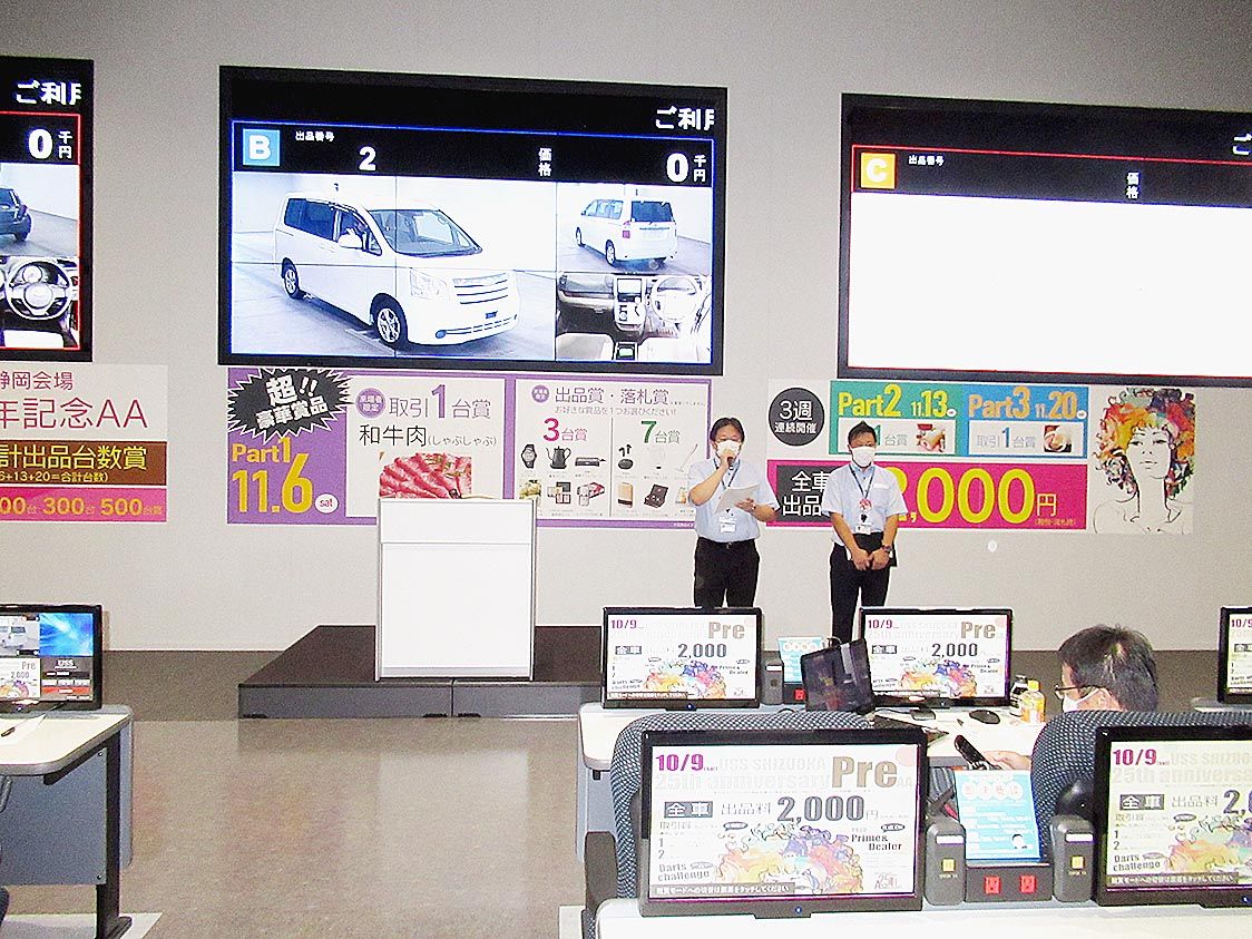 【静岡】ユー・エス・エス(USS)静岡会場は、「USS静岡会場25周年記念プレAA」を開催した=写真。出品台数は目標の2600台を上回る2724台を集荷、成約率66・7%と活発な取り引きとなった。 AA開催に先立ち大橋由明会長場代行は、来...