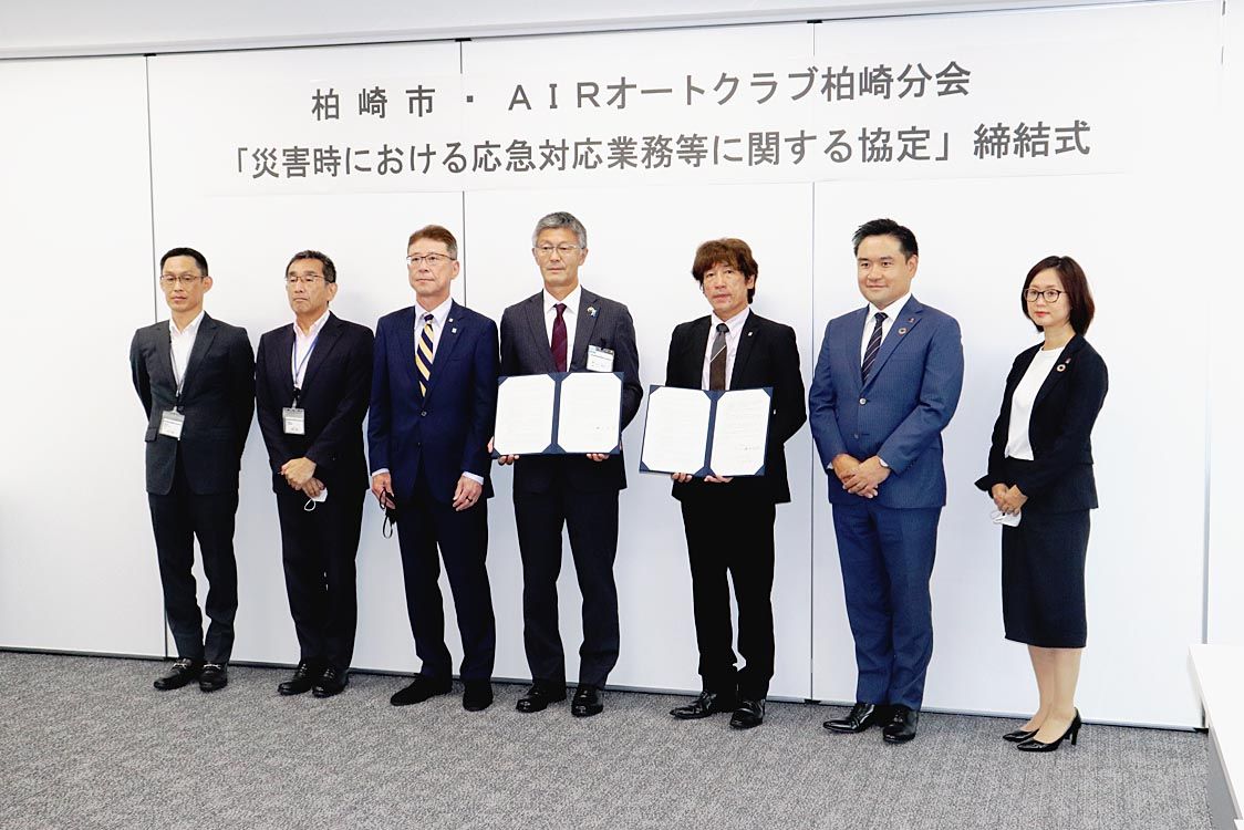 【新潟】損害保険ジャパン代理店の自動車整備工場会員組織であるAIRオートクラブ柏崎分会は、柏崎市との間で「災害時における応急対応業務等に関する協定」を締結した。 このほど、柏崎市役所で締結式が行われ、AIRオートクラブからは吉田孝継AIR...