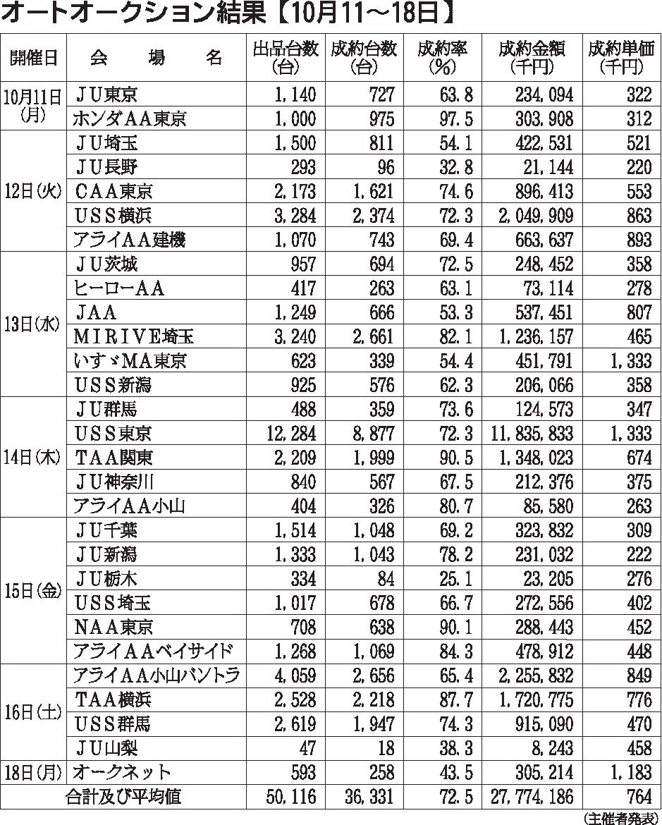 〈オートオークション結果〉首都圏 2021/10/11~18