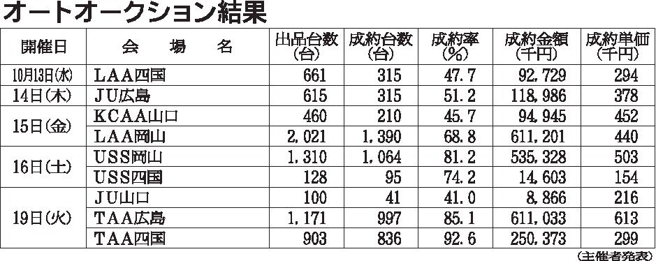〈オートオークション結果〉中四国地区 2021/10/13~19