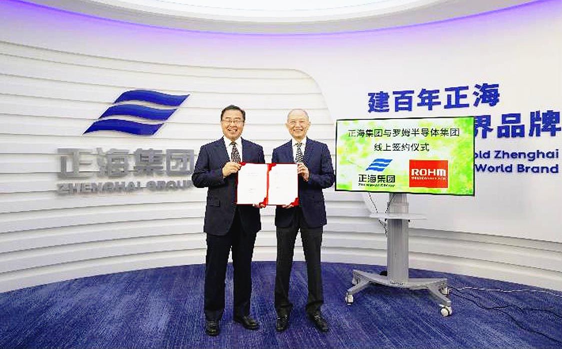 ロームは21日、中国・正海集団とパワーモジュール事業で合弁会社の設立に向けた契約を締結した=写真=と発表した。新たに設立する合弁会社は「上海海姆希科半導体(HAIMOSIC)」で、12月に中国国内で設立し、22年の量産開始を目指す。出資比...