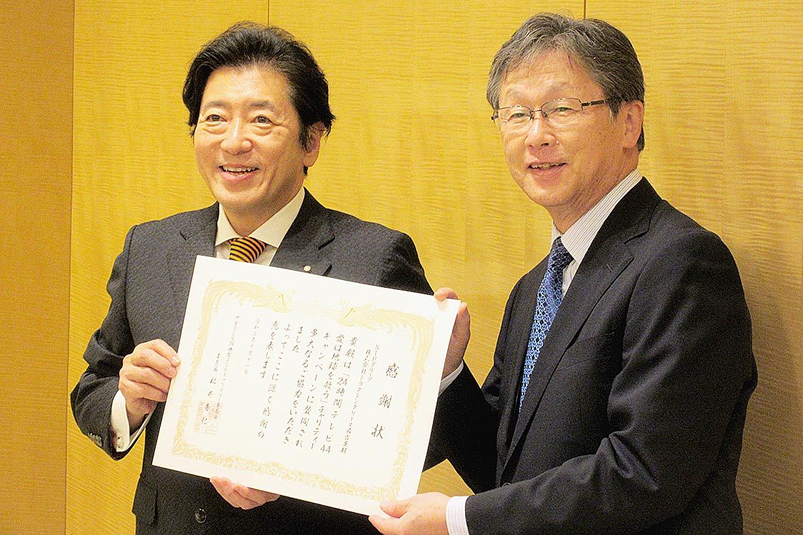 【名古屋】トヨタレンタリース名古屋(小栗成男社長)はこのほど、日本テレビ系で放送された「24時間テレビ44愛は地球を救う」チャリティーキャンペーンに20万円を寄付した=写真。 小栗社長らが名古屋市中村区の中京テレビ本社を訪問し、募金贈呈式...