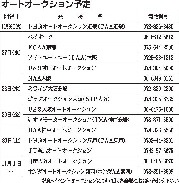 〈オートオークション予定〉近畿地区 2021/10/26~11/1