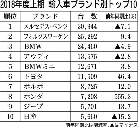 上期輸入車、シェア最高9.5% 4年連続増 DE、新型車が牽引
