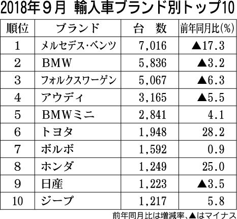 日本自動車輸入組合(JAIA)が4日に発表した2018年度上期(4~9月)の外国メーカー車新車販売台数は、前年同期比1・6%増の14万9620台となり、上期として4年連続の増加となった。登録車に占めるシェアは過去最高の9・5%を記録した。...