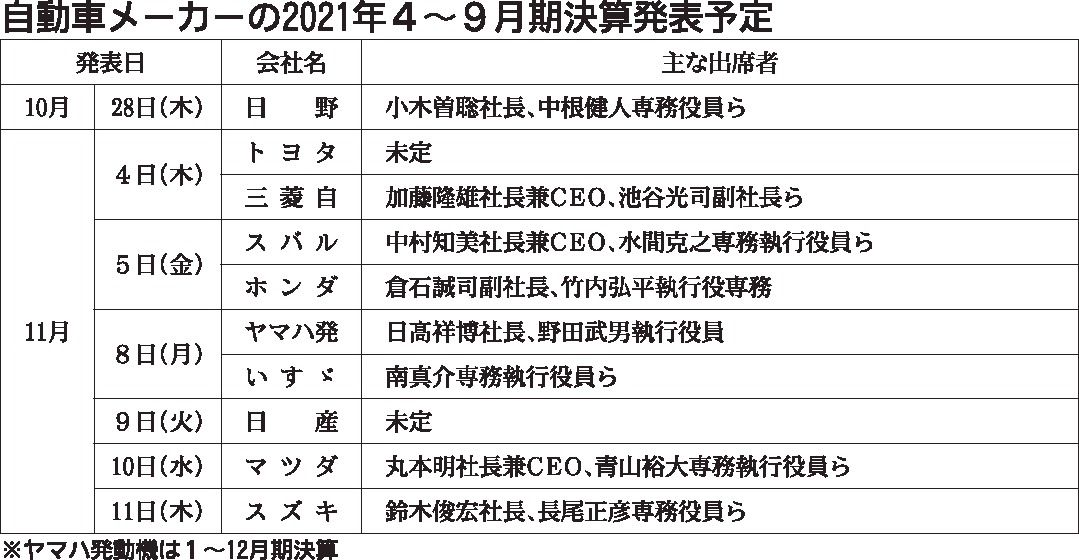 自動車メーカーの2021年4~9月期(第2四半期累計)の業績発表が28日の日野自動車を皮切りにスタートする。半導体不足や新型コロナウイルス感染拡大によるサプライチェーンの混乱による生産調整や、エネルギー、原材料価格の高騰によるマイナスの影...