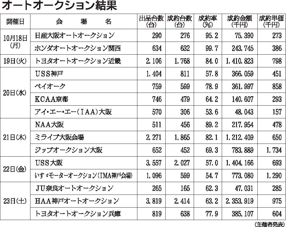 〈オートオークション結果〉近畿地区 2021/10/18~23