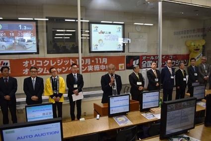 【津】三重県中古自動車販売商工組合(JU三重、奥村悦二理事長)は2日、「オールJU中部リレーAA&青年部担当ジャンボAA」を出品目標900台を大きく上回る1027台を集め、盛大に開催した。同AAは日本中古自動車販売協会連合会・中部連絡協議...