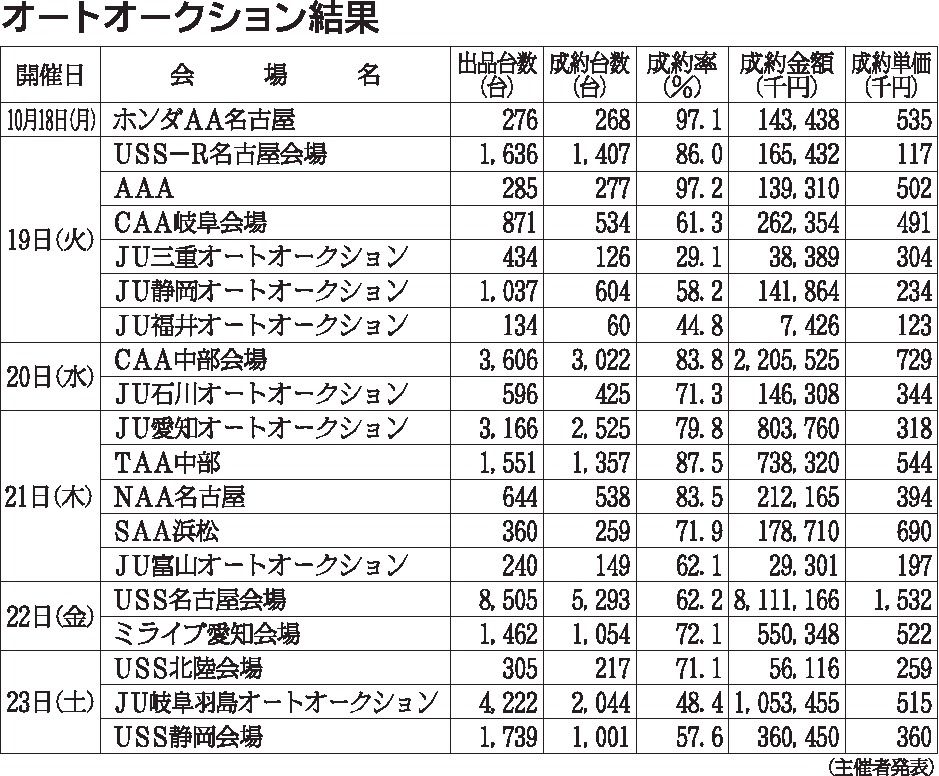 〈オートオークション結果〉中部地区 2021/10/18~23