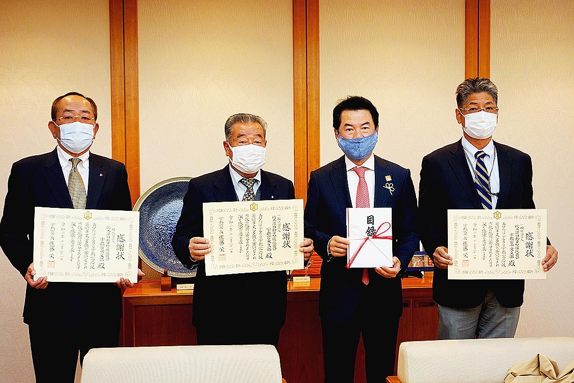 【宇都宮】栃木県自動車整備振興会(喜谷辰夫会長)宇都宮東支部(石塚重二支部長)、同宇都宮中央支部(坂本功樹支部長)、同宇都宮南支部(萩島政明支部長)の3支部は、支部創立50周年記念事業の一環として、宇都宮市(佐藤栄一市長)に記念品「卓上電...