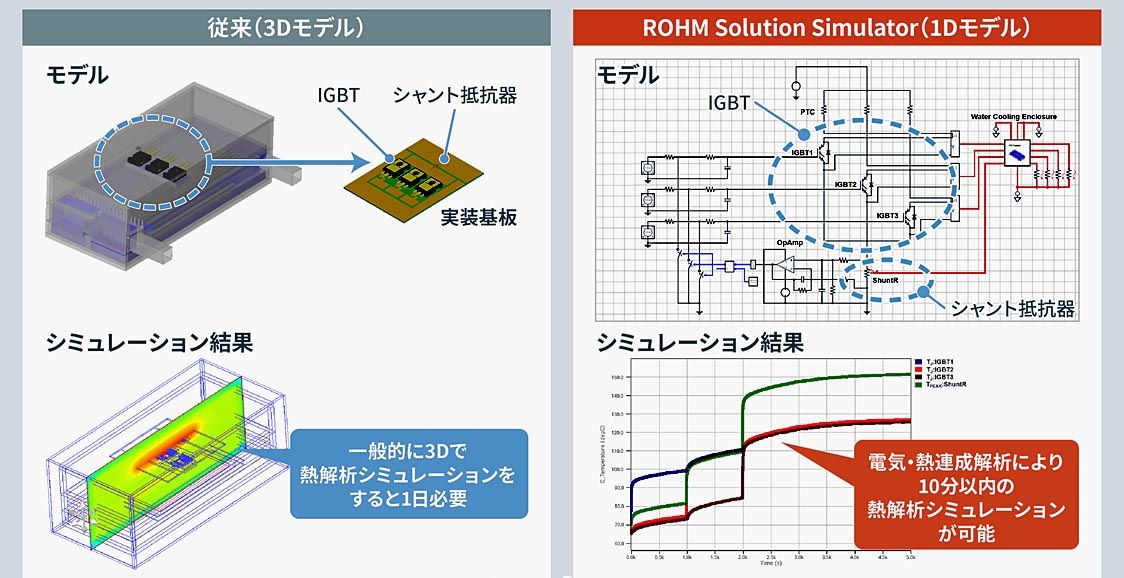 ロームは、ウェブサイト上で無料公開している「ローム ソリューション シミュレーション」に、熱解析機能を追加したと発表した。自動車や産業機器などの電子回路設計者やシステム設計者向けに、パワーデバイス(パワー半導体)と駆動ICなどをソリューシ...