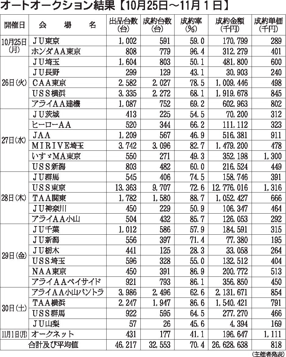 〈オートオークション結果〉首都圏 2021/10/25~11/1