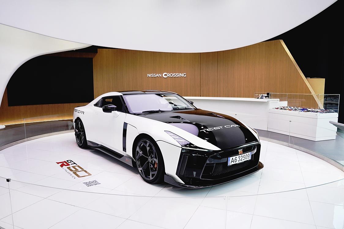 日産自動車は、伊イタルデザインと共同開発した「GT-R50 byイタルデザイン」のテストカーをブランド発信拠点「ニッサンクロッシング」(東京都中央区)に期間限定で展示すると発表した。ボディーやリアウィング、カーボンパーツなどの剛性・耐久テストのためにサーキット走行で使用した車両を展示する。期間は3月31日まで。